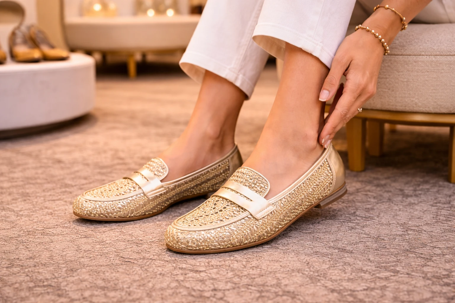 Kožne ženske mokasinke u gold boji predstavljaju elegantan i praktičan izbor za žene koje žele obuću koja unosi dozu profinjenosti u svakodnevne kombinacije. Ovaj model donosi klasičan izgled sa modernim akcentom, pa se lako uklapa uz ležerne, gradske i urednije outfite. Zahvaljujući zaobljenom vrhu i jednostavnom slip-on dizajnu bez kopčanja, mokasinke se brzo obuvaju i pružaju ugodan osjećaj tokom nošenja. Mekani uložak dodatno doprinosi udobnosti, dok blok peta visine 10 mm daje laganu potporu i stabilniji korak. Tekstilna unutrašnjost pruža prijatan osjećaj, a sintetički potplat doprinosi praktičnosti i svakodnevnoj nosivosti. Gold nijansa daje ovom modelu dopadljiv i ženstven izgled koji lako može osvježiti jednostavne modne kombinacije.