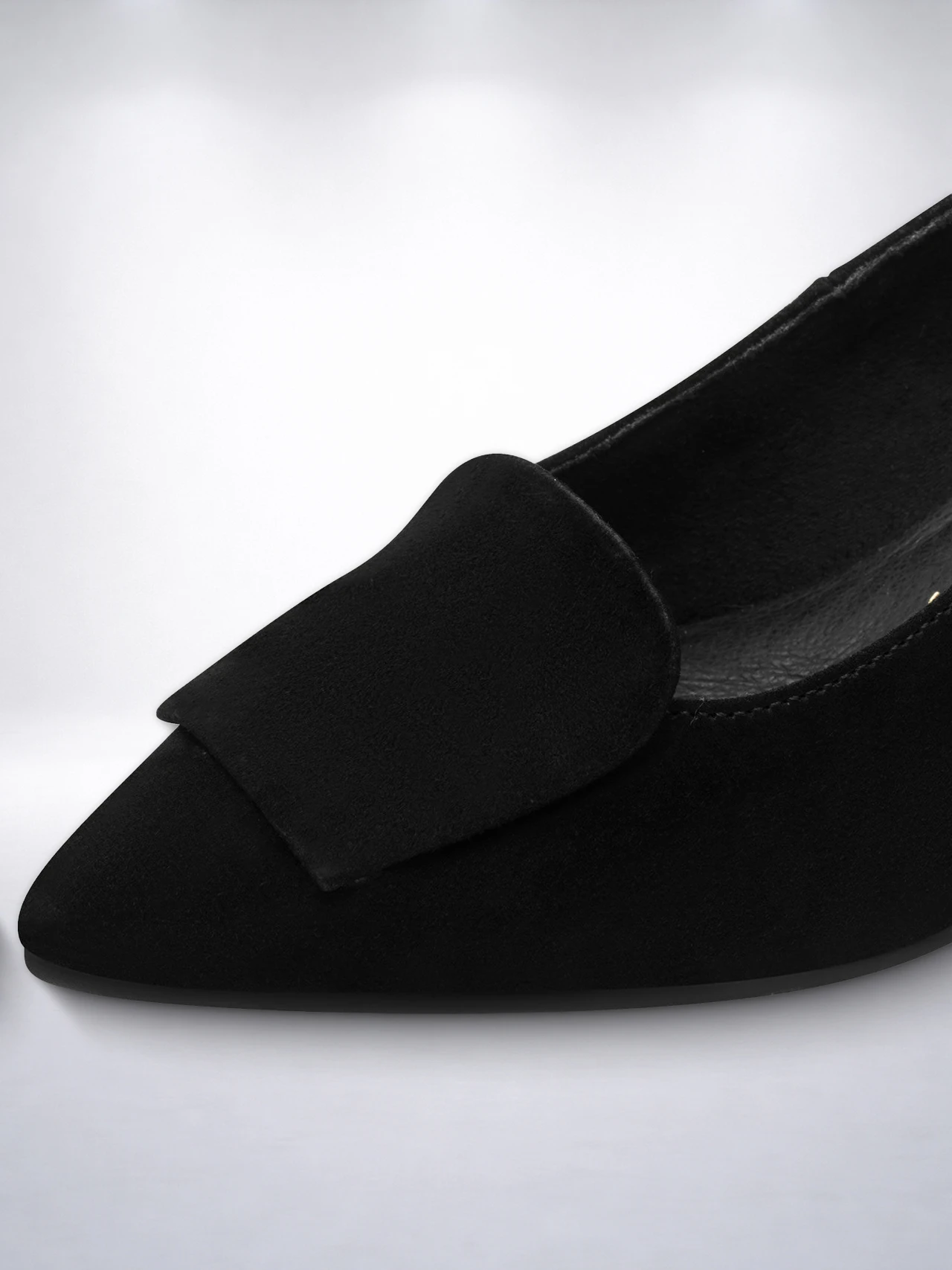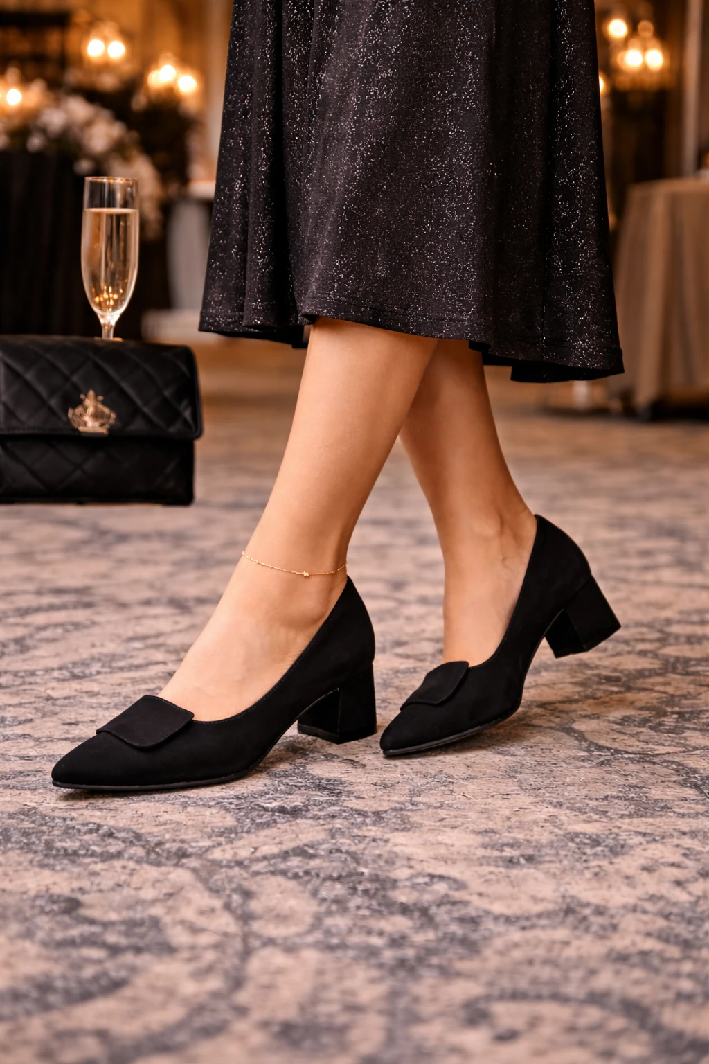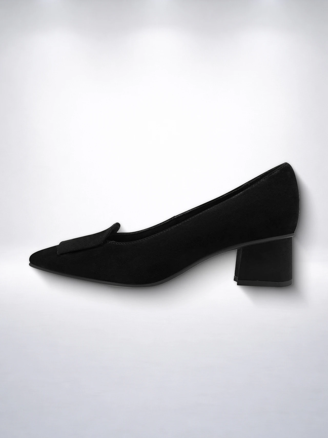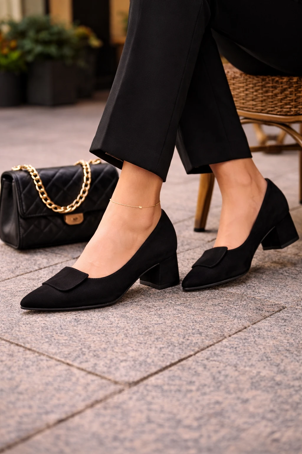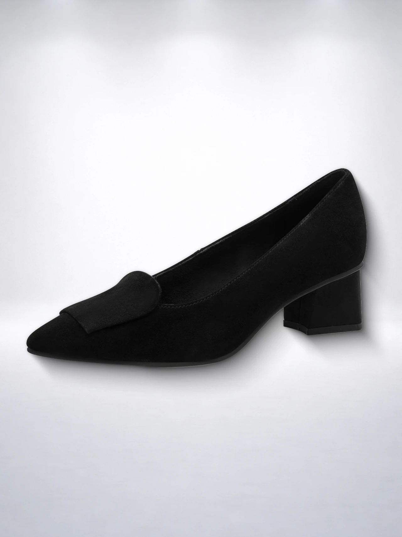 Blok peta visine 45 mm pruža dobru ravnotežu između elegancije i praktičnosti, jer daje lijepu visinu bez osjećaja nestabilnosti. Špicasti vrh dodatno naglašava sofisticiran karakter modela, dok fleksibilan potplat doprinosi ugodnijem hodu. Pojačana peta i zaštitni čepić za potpeticu dodatno upotpunjuju funkcionalnost ove cipele.