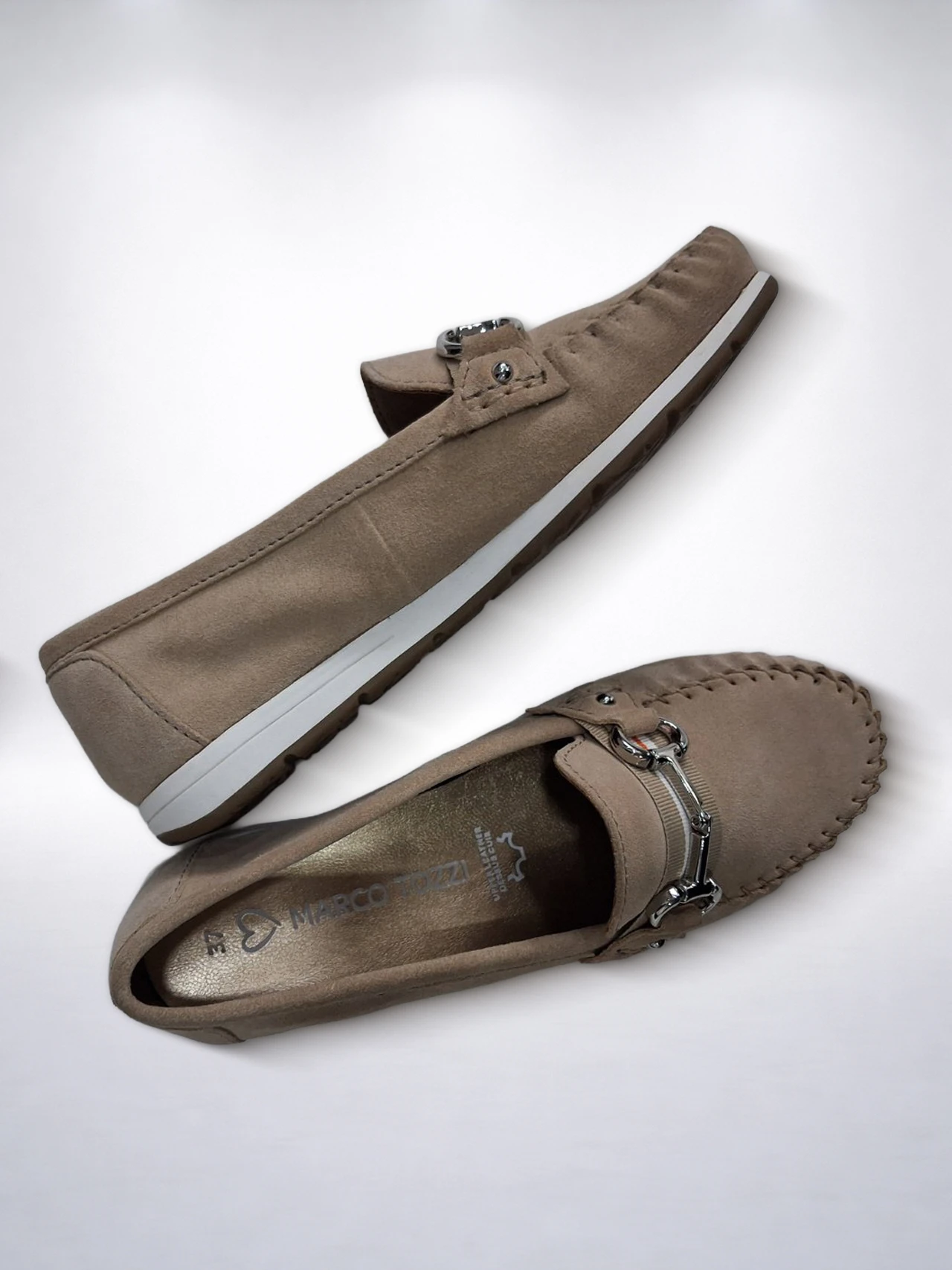 Marco Tozzi kožne ženske mokasinke u bež nijansi predstavljaju elegantan i opušten izbor za žene koje žele spoj udobnosti, kvaliteta i modernog casual stila. Izrađene su od kvalitetne prirodne kože koja doprinosi prijatnom osjećaju pri nošenju, dugotrajnosti i prozračnosti tokom dana. Posebnu udobnost ovom modelu daje mekana prilagodljiva tabanica koja se oblikuje prema stopalu i pruža lakši i ugodniji korak, a nakon nošenja vraća svoj prvobitni oblik. Dodatni pečat modelu daje upečatljiv metalni detalj koji doprinosi sofisticiranijem izgledu i čini ove mokasinke posebnim izborom za žene koje vole obuću sa karakterom. Zahvaljujući opuštenom, ali dotjeranom izgledu, Marco Tozzi mokasinke lako se uklapaju uz kraće pantalone, midi suknje, lepršave haljine, ali i urednije poslovne kombinacije.