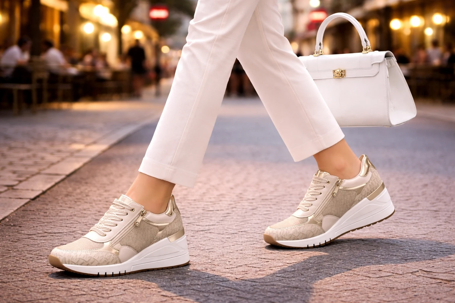 Marco Tozzi ženske patike u cream comb nijansi predstavljaju moderan i upečatljiv izbor za žene koje žele obuću koja spaja udobnost, praktičnost i savremen stil. Ovaj model donosi atraktivan izgled zahvaljujući wedge formi i platformi, pa svakom outfitu daje malo izraženiji modni karakter bez odricanja od svakodnevne nosivosti. Gornji dio izrađen je od sintetike, dok tekstilna postava i tekstilni uložak doprinose prijatnom osjećaju pri nošenju. Bočni rajsferšlus omogućava lakše obuvanje i dodatno naglašava moderan izgled modela, a podstavljeni ulošci pružaju više udobnosti tokom dana. Srednje visoka peta od 7 cm i platforma od 2 cm daju lijepu visinu i skladniji korak, dok regularna širina model čini pogodnim za svakodnevne kombinacije. Marco Tozzi patike u cream comb boji odličan su izbor za žene koje vole obuću sa stilom, ali i dovoljno praktičnu za čestu upotrebu.