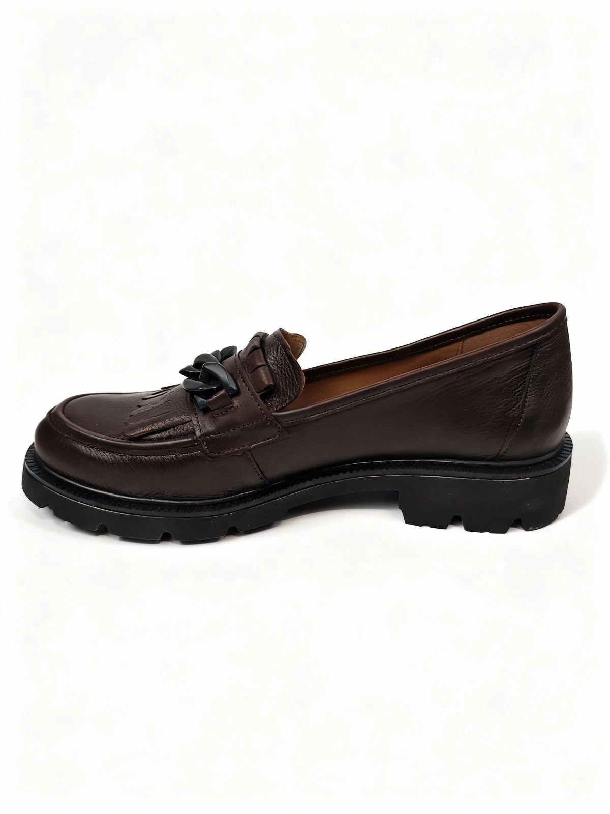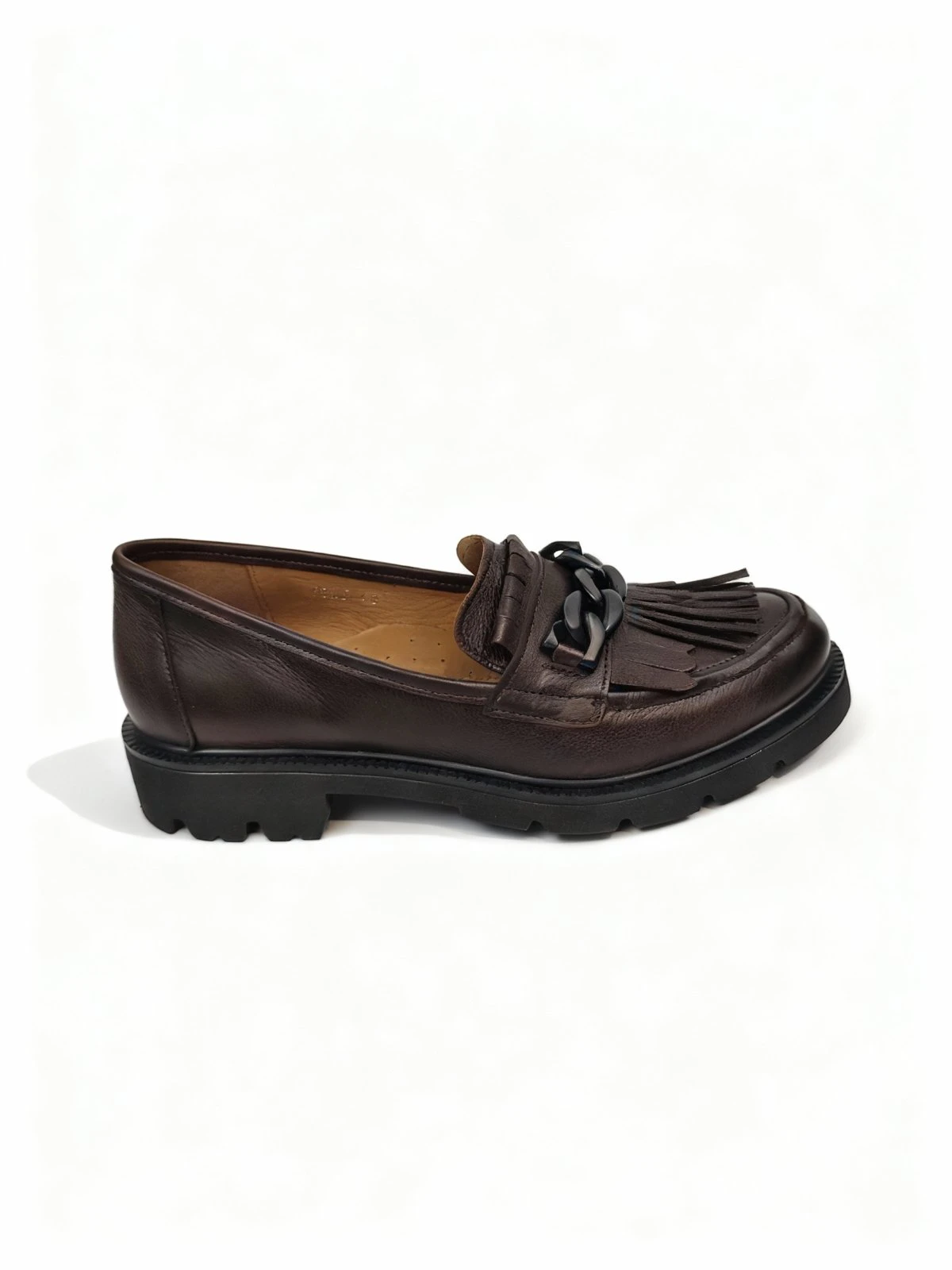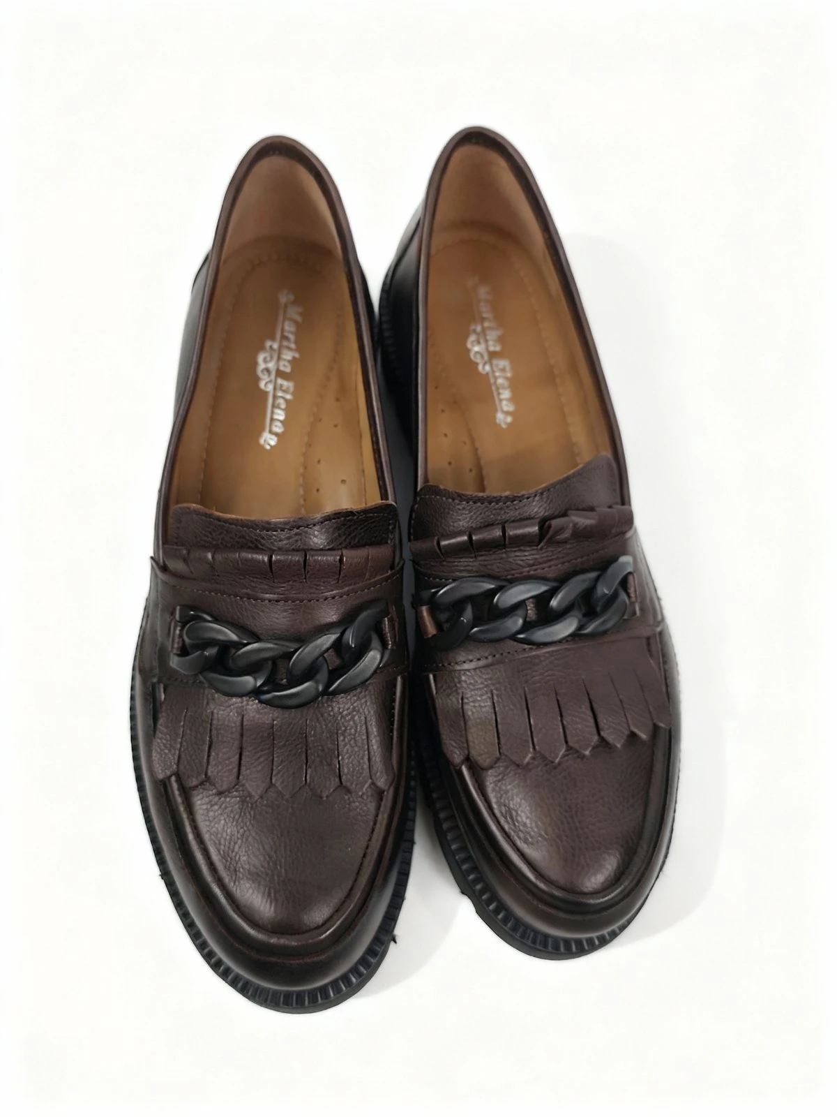 Mariha Elena ženske mokasine smeđe model 10865 donose spoj klasične siluete, modernih detalja i svestranog stila za svakodnevno nošenje. Ovaj model se ističe elegantnom mokasina formom, dekorativnim lancem i resastim detaljem na gornjem dijelu, što mu daje upečatljiv i sofisticiran izgled. Smeđa boja unosi toplinu i lako se uklapa uz neutralne, zemljane i klasične modne kombinacije, čineći ove mokasine odličnim izborom za različite prilike. Deblji profilisani đon doprinosi stabilnosti, udobnosti i modernijem vizuelnom dojmu, dok slip-on dizajn omogućava jednostavno obuvanje i skidanje. Mariha Elena 10865 idealan je model za žene koje žele obuću koja spaja eleganciju, praktičnost i izražajan detalj u svakodnevnom stilu.